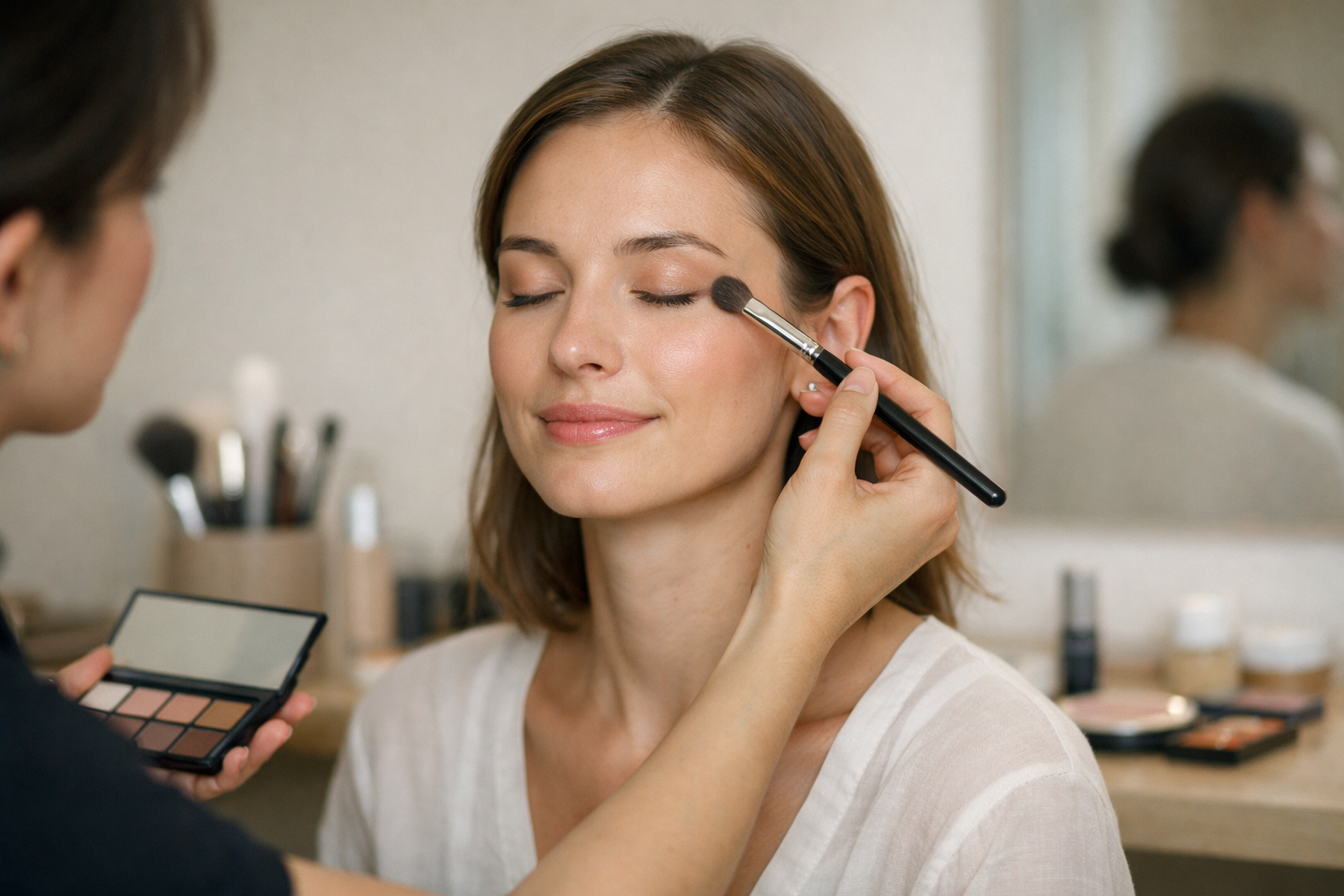 Uygulama öncesinde cilt tipi değerlendirilir ve kişiye en uygun makyaj stili belirlenir.